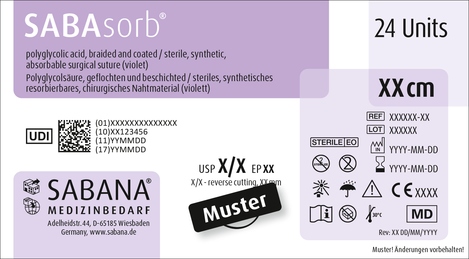 SABAsorb® ist ein synthetisches, geflochtenes, resorbierbares, steriles, chirurgisches Nahtmaterial aus Polyglykolsäure (PGA). Das geflochtene Nahtmaterial ist einheitlich mit Polycaprolacton und Calciumstearat beschichtet. Seine Resorption ist zwischen 60 und 90 Tagen im Wesentlichen abgeschlossen.