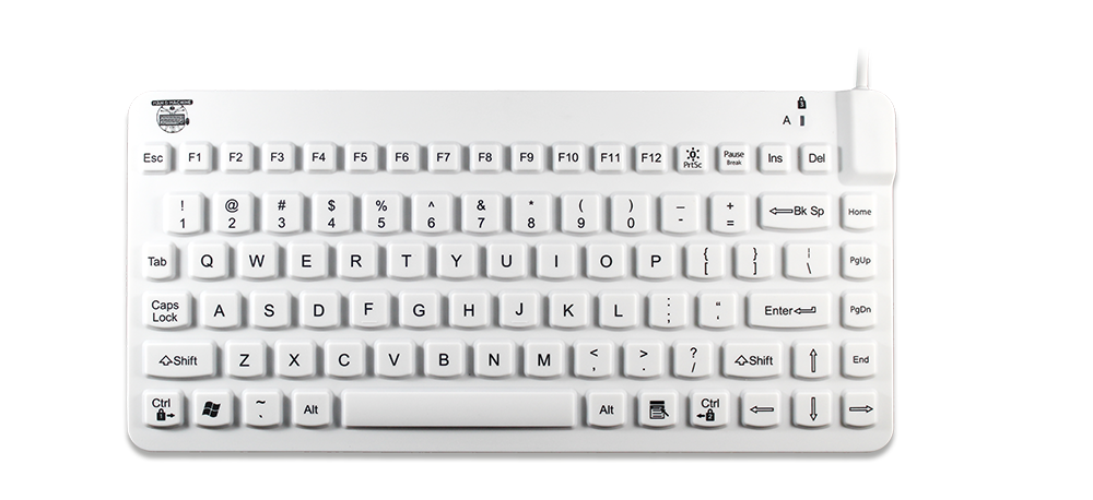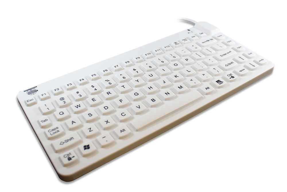 Die Slim Cool ist unsere kompakteste medizinische Silikontastatur. Ideal, für Anwendungen mit geringer numerischer Dateneingabe sowie beengten Arbeitsplätzen. Das Gerät ist vollständig versiegelt, sodass es abgewischt oder abgesprüht werden kann und sogar in ein normales, von Krankenhäusern zugelassenes Flächendesinfektionsmittel, eingetaucht werden kann. In unserer Fabrik in den USA mit modernster Technologie hergestellt, verfügt es über EN60601 und IP68 Zertifikate. Der leichte Tastendruckpunkt versichert einen optimalen Schreibkomfort. Die Tastatur verfügt über eine Sperrfunktion für die zuverlässige Reinigung. Die Slim Cool Tastatur hat keinen separaten Ziffernblock. Sie wird gerne in Zahnarztpraxen eingesetzt.