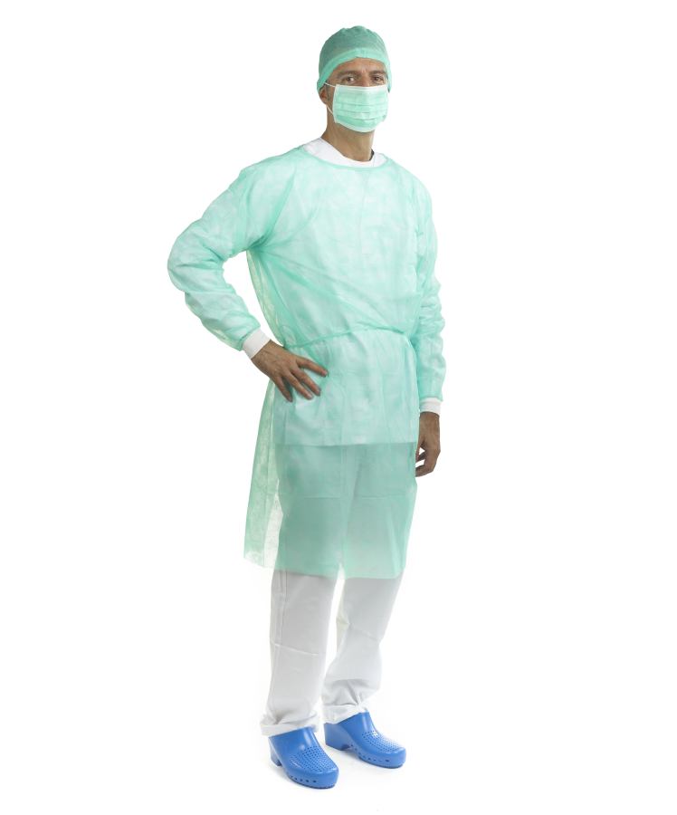 Wir empfehlken OP-Kittel Standard für kurze einfache Eingriffe unter geringer Flüssigkeitsbelastung sowie als Patientenkittel.