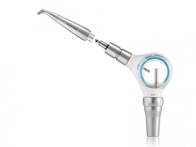 Ein Gerät, zwei Indikationen – einfach durch drehen des Rings zwischen supra- und subgingivalen Pulverstrahlen hin- und herschalten.